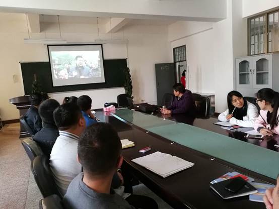 会议开始,武尔维老师带领大家观看了《习近平治国方略:中国这五年》专题片的第一集,系统讲述了习总书记以人民为中心的体系、制度、道路,深入浅出的归纳了党在带领人民发家致富和面对困难群众实施精准扶贫的各项举措,“以人民为中心”的话语总是陪伴在习总书记的行动上,更是回荡在参会每一位同志的耳边,余音绕梁。