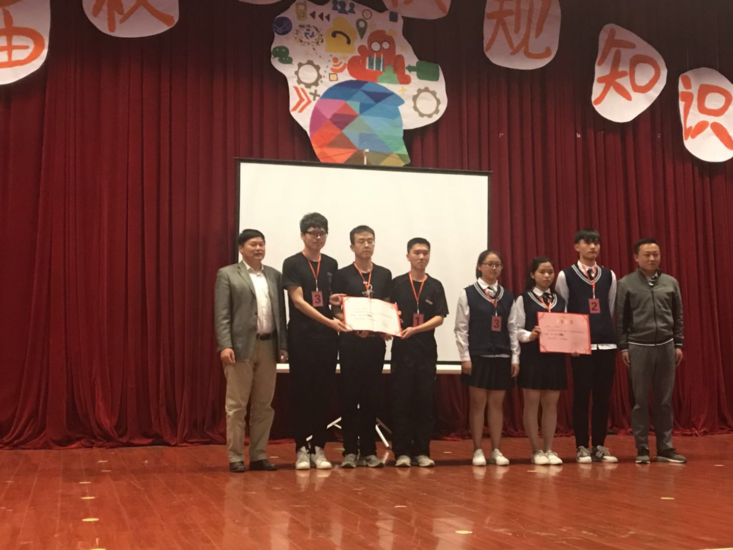 4月15日晚,我校第二十届校纪校规知识竞赛在体育馆副馆举行。校团委,后勤集团,校学生处等嘉宾评委以及各个学院代表队参加了此次活动。来自15级计算机科学与技术专业的黄自鹏、陈健、陈辉三位同学代表学院参赛取得了团体第三名的优异成绩,荣获了二等奖。